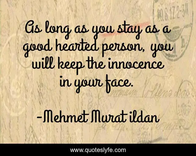 This page presents the quote "As long as you stay as a good hearted person, you will keep the innocence in your face.". Author of this quote is Mehmet Murat ildan. .