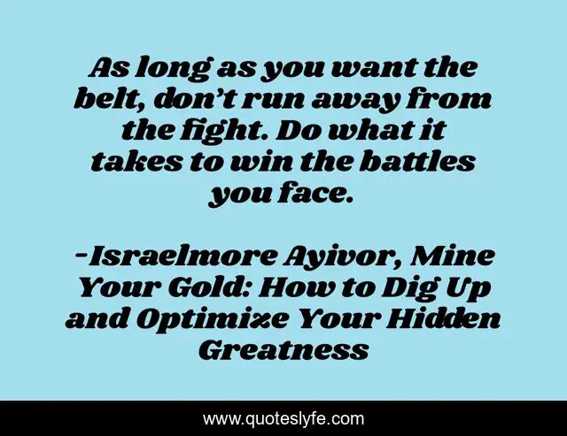 "Israelmore Ayivor, Mine Your Gold: How to Dig Up and Optimize Your Hidden Greatness Quotes." Quoteslyfe.com, 2025. Tue. 09 Dec. 2025. <https://www.quoteslyfe.com/quote/As-long-as-you-want-the-belt-129191>.
