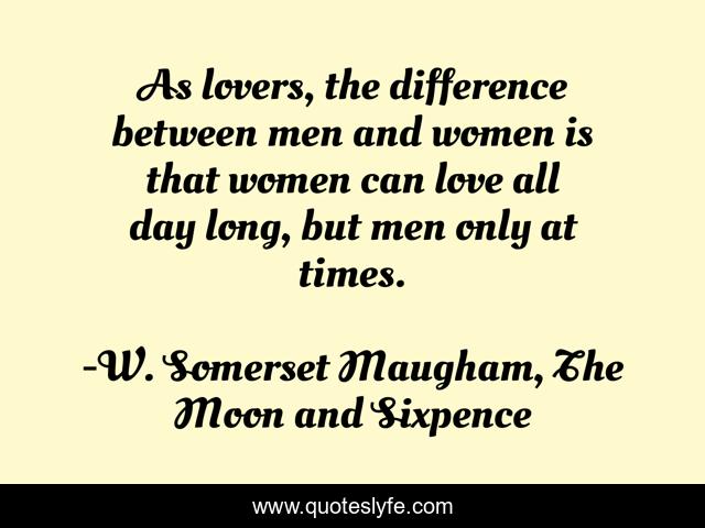 "W. Somerset Maugham, The Moon and Sixpence Quotes." Quoteslyfe.com, 2025. Sun. 07 Dec. 2025. <https://www.quoteslyfe.com/quote/As-lovers-the-difference-between-men-and-479>.