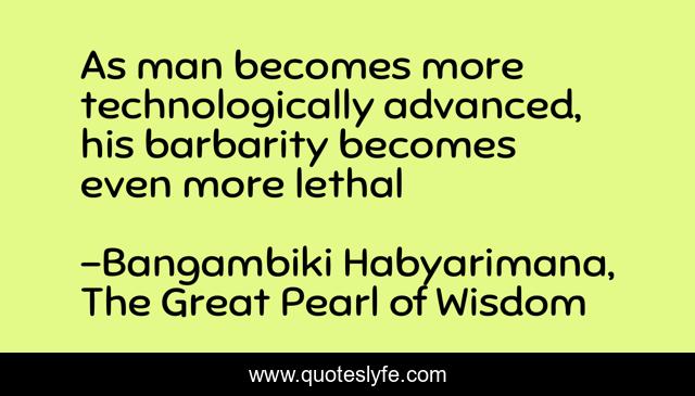 "Bangambiki Habyarimana, The Great Pearl of Wisdom Quotes." Quoteslyfe.com, 2025. Sun. 07 Dec. 2025. <https://www.quoteslyfe.com/quote/As-man-becomes-more-technologically-advanced-his-154298>.