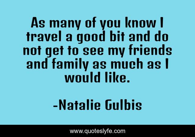 This page presents the quote "As many of you know I travel a good bit and do not get to see my friends and family as much as I would like.". Author of this quote is Natalie Gulbis. This quote is about good, friends, family,.