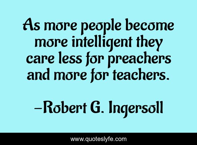 This page presents the quote "As more people become more intelligent they care less for preachers and more for teachers.". Author of this quote is Robert G. Ingersoll. .