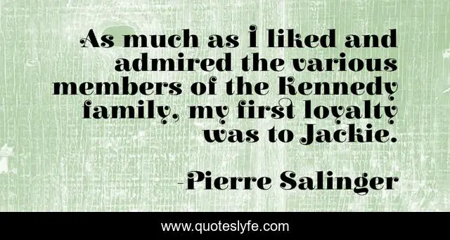 This page presents the quote "As much as I liked and admired the various members of the Kennedy family, my first loyalty was to Jackie.". Author of this quote is Pierre Salinger. This quote is about loyalty, members, first,.
