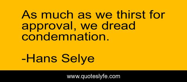 This page presents the quote "As much as we thirst for approval, we dread condemnation.". Author of this quote is Hans Selye. This quote is about friendship, self-esteem,.