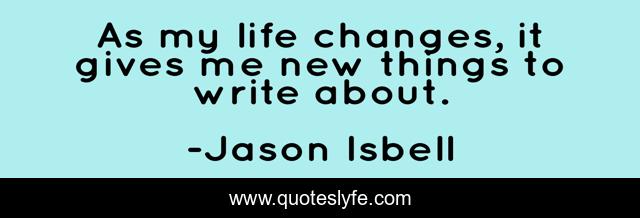 This page presents the quote "As my life changes, it gives me new things to write about.". Author of this quote is Jason Isbell. This quote is about me, changes, life changes,.