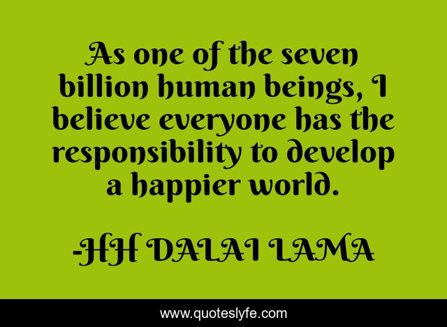 This page presents the quote "As one of the seven billion human beings, I believe everyone has the responsibility to develop a happier world.". Author of this quote is HH DALAI LAMA. .