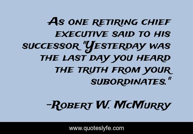 This page presents the quote "As one retiring chief executive said to his successor "Yesterday was the last day you heard the truth from your subordinates."". Author of this quote is Robert W. McMurry. .