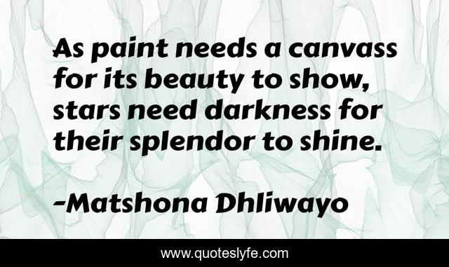 "Matshona Dhliwayo Quotes." Quoteslyfe.com, 2025. Fri. 05 Dec. 2025. <https://www.quoteslyfe.com/quote/As-paint-needs-a-canvass-for-its-58044>.