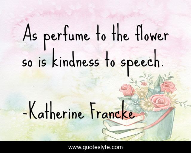This page presents the quote "As perfume to the flower so is kindness to speech.". Author of this quote is Katherine Francke. This quote is about helping, people,.