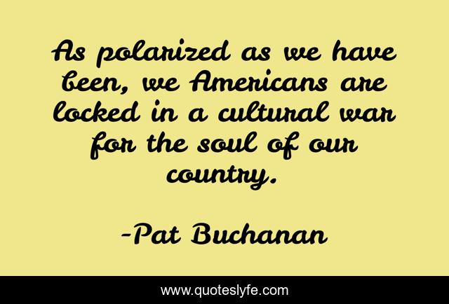 This page presents the quote "As polarized as we have been, we Americans are locked in a cultural war for the soul of our country.". Author of this quote is Pat Buchanan. This quote is about country, cultural, soul,.