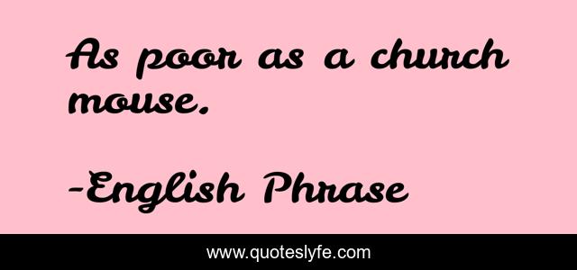 This page presents the quote "As poor as a church mouse.". Author of this quote is English Phrase. .