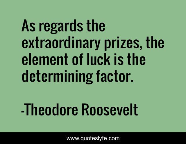 This page presents the quote "As regards the extraordinary prizes, the element of luck is the determining factor.". Author of this quote is Theodore Roosevelt. This quote is about success, luck,.