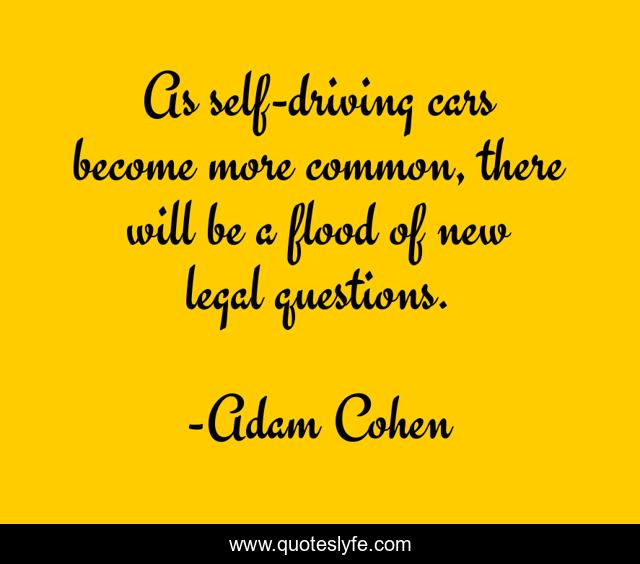 This page presents the quote "As self-driving cars become more common, there will be a flood of new legal questions.". Author of this quote is Adam Cohen. This quote is about new, questions,.