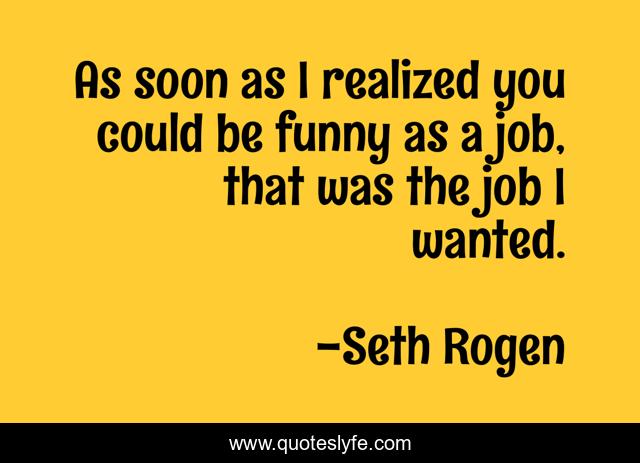 This page presents the quote "As soon as I realized you could be funny as a job, that was the job I wanted.". Author of this quote is Seth Rogen. This quote is about job, wanted,.