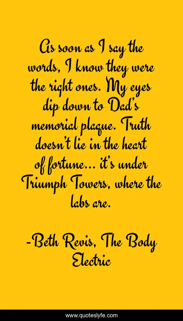 "Beth Revis, The Body Electric Quotes." Quoteslyfe.com, 2025. Sat. 06 Dec. 2025. <https://www.quoteslyfe.com/quote/As-soon-as-I-say-the-words-112987>.
