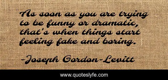 This page presents the quote "As soon as you are trying to be funny or dramatic, that's when things start feeling fake and boring.". Author of this quote is Joseph Gordon-Levitt. This quote is about start, fake,.