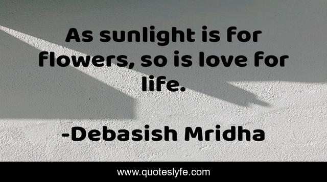 This page presents the quote "As sunlight is for flowers, so is love for life.". Author of this quote is Debasish Mridha. This quote is about life, love, knowledge, inspirational, intelligence, philosophy, wisdom, quotes, affection,.