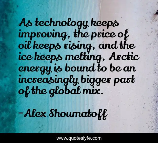 This page presents the quote "As technology keeps improving, the price of oil keeps rising, and the ice keeps melting, Arctic energy is bound to be an increasingly bigger part of the global mix.". Author of this quote is Alex Shoumatoff. This quote is about energy, oil, price,.