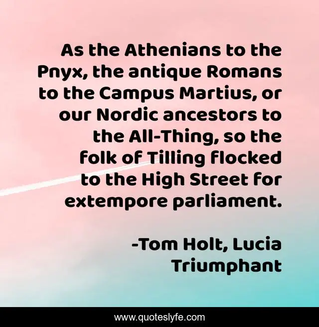"Tom Holt, Lucia Triumphant Quotes." Quoteslyfe.com, 2025. Mon. 08 Dec. 2025. <https://www.quoteslyfe.com/quote/As-the-Athenians-to-the-Pnyx-the-258075>.