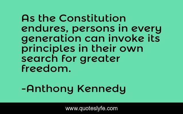 This page presents the quote "As the Constitution endures, persons in every generation can invoke its principles in their own search for greater freedom.". Author of this quote is Anthony Kennedy. This quote is about search, constitution,.