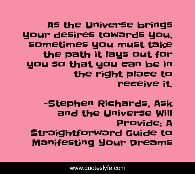 "Stephen Richards, Ask and the Universe Will Provide: A Straightforward Guide to Manifesting Your Dreams Quotes." Quoteslyfe.com, 2025. Sun. 28 Dec. 2025. <https://www.quoteslyfe.com/quote/As-the-Universe-brings-your-desires-towards-44799>.