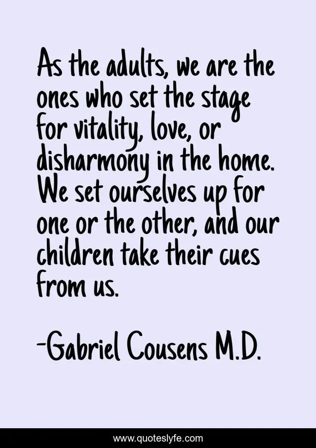 "Gabriel Cousens M.D. Quotes." Quoteslyfe.com, 2025. Sat. 06 Dec. 2025. <https://www.quoteslyfe.com/quote/As-the-adults-we-are-the-ones-99792>.