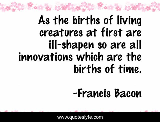 This page presents the quote "As the births of living creatures at first are ill-shapen so are all innovations which are the births of time.". Author of this quote is Francis Bacon. .