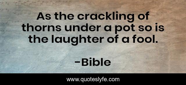 This page presents the quote "As the crackling of thorns under a pot so is the laughter of a fool.". Author of this quote is Bible. .