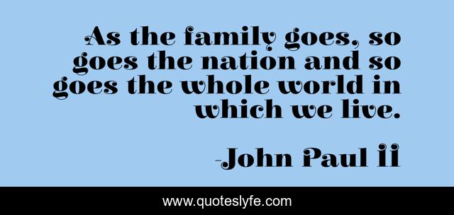 This page presents the quote "As the family goes, so goes the nation and so goes the whole world in which we live.". Author of this quote is John Paul II. .