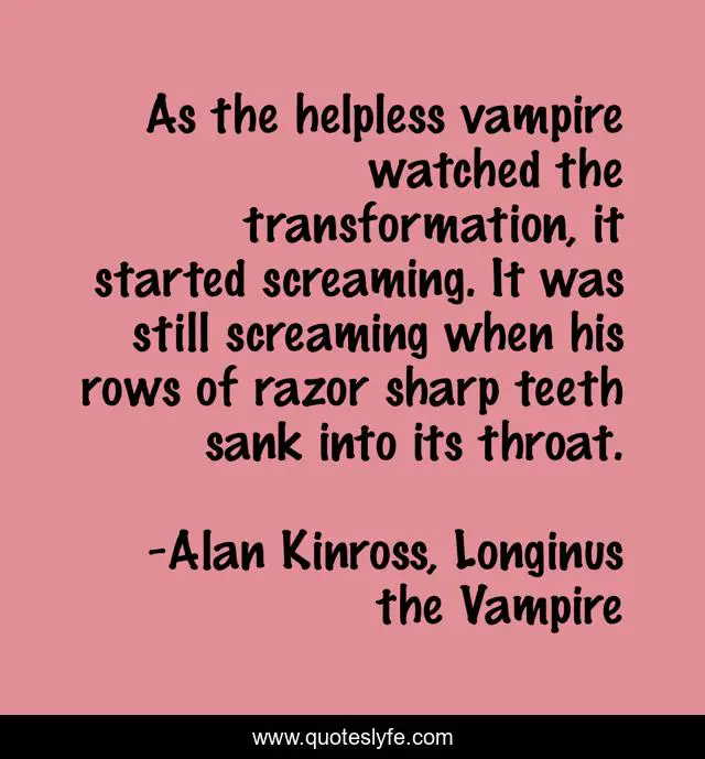 "Alan Kinross, Longinus the Vampire Quotes." Quoteslyfe.com, 2025. Fri. 05 Dec. 2025. <https://www.quoteslyfe.com/quote/As-the-helpless-vampire-watched-the-transformation-156265>.