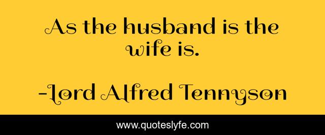 This page presents the quote "As the husband is the wife is.". Author of this quote is Lord Alfred Tennyson. .