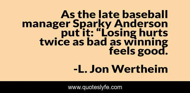 This page presents the quote "As the late baseball manager Sparky Anderson put it: “Losing hurts twice as bad as winning feels good.". Author of this quote is L. Jon Wertheim. .