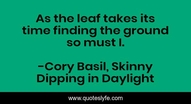 "Cory Basil, Skinny Dipping in Daylight Quotes." Quoteslyfe.com, 2025. Sat. 06 Dec. 2025. <https://www.quoteslyfe.com/quote/As-the-leaf-takes-its-time-finding-160755>.