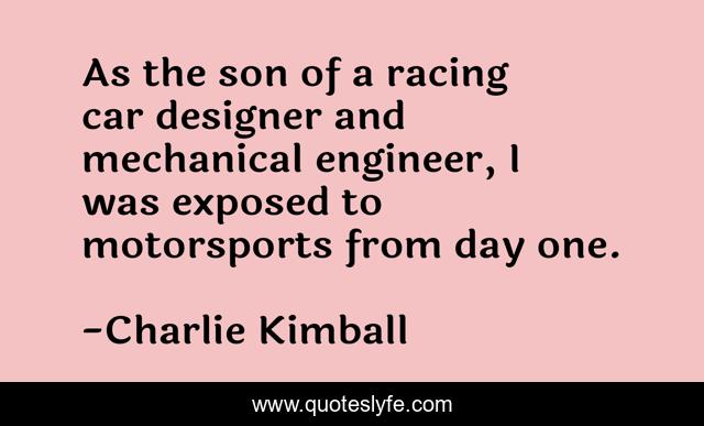 This page presents the quote "As the son of a racing car designer and mechanical engineer, I was exposed to motorsports from day one.". Author of this quote is Charlie Kimball. This quote is about racing, day, son,.