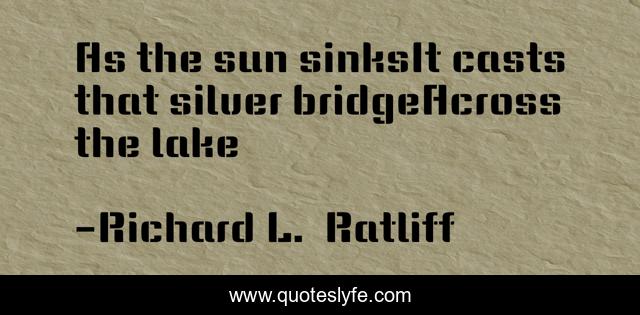 This page presents the quote "As the sun sinksIt casts that silver bridgeAcross the lake". Author of this quote is Richard L. Ratliff. This quote is about bridge, sunsets, natures-beauty, nature, sun, lake, sunset, silver,.
