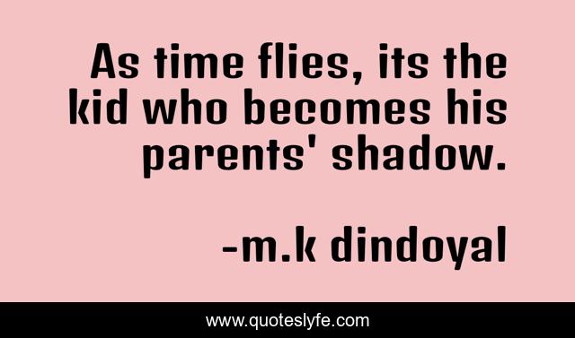 This page presents the quote "As time flies, its the kid who becomes his parents' shadow.". Author of this quote is m.k dindoyal. This quote is about shadow, child, parents, support, time,.