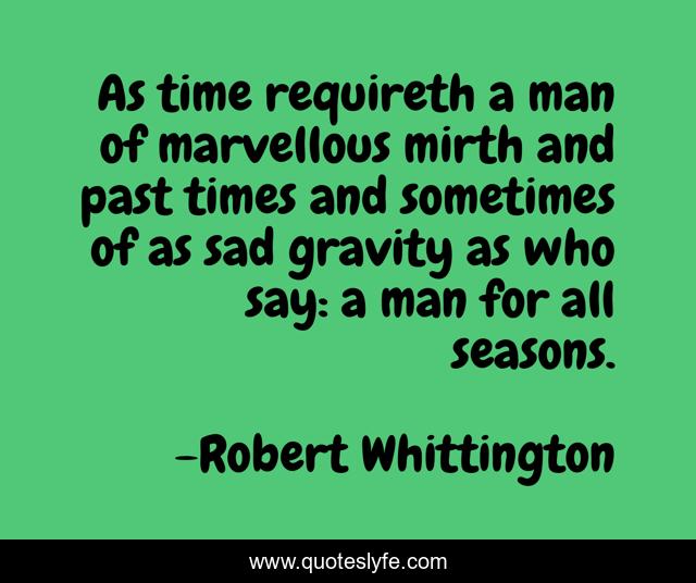 This page presents the quote "As time requireth a man of marvellous mirth and past times and sometimes of as sad gravity as who say: a man for all seasons.". Author of this quote is Robert Whittington. This quote is about character, personality,.