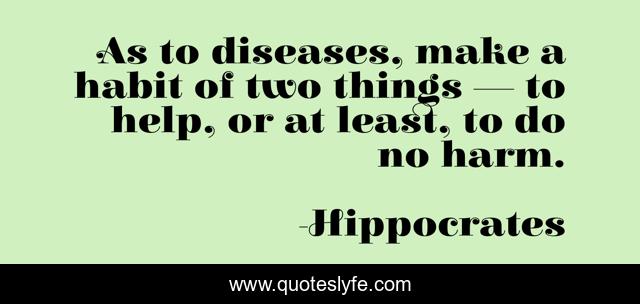 This page presents the quote "As to diseases, make a habit of two things — to help, or at least, to do no harm.". Author of this quote is Hippocrates. This quote is about medicine, science, harm, diseases,.