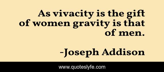 This page presents the quote "As vivacity is the gift of women gravity is that of men.". Author of this quote is Joseph Addison. .