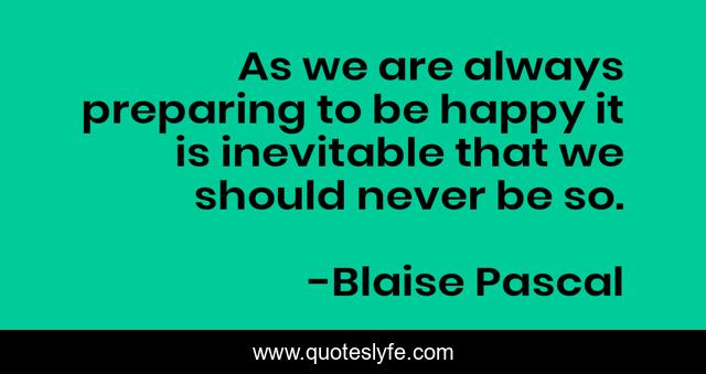 This page presents the quote "As we are always preparing to be happy it is inevitable that we should never be so.". Author of this quote is Blaise Pascal. .