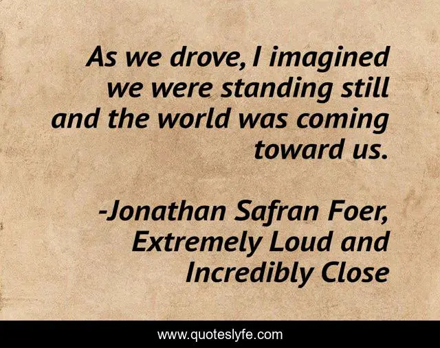 This page presents the quote "As we drove, I imagined we were standing still and the world was coming toward us.". Author of this quote is Jonathan Safran Foer, Extremely Loud and Incredibly Close. This quote is about world, drive,.