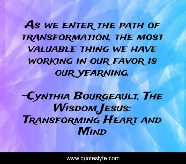"Cynthia Bourgeault, The Wisdom Jesus: Transforming Heart and Mind Quotes." Quoteslyfe.com, 2025. Fri. 05 Dec. 2025. <https://www.quoteslyfe.com/quote/As-we-enter-the-path-of-transformation-222830>.