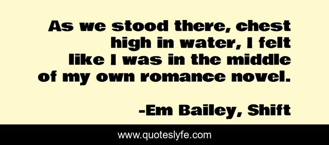 This page presents the quote "As we stood there, chest high in water, I felt like I was in the middle of my own romance novel.". Author of this quote is Em Bailey, Shift. This quote is about romance, novel,.