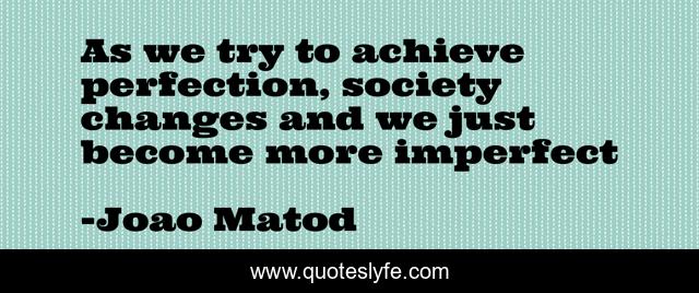 This page presents the quote "As we try to achieve perfection, society changes and we just become more imperfect". Author of this quote is Joao Matod. This quote is about imperfect, inspire, imperfection, perfectionism, society, perfection, change,.