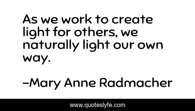 "Mary Anne Radmacher Quotes." Quoteslyfe.com, 2025. Sat. 06 Dec. 2025. <https://www.quoteslyfe.com/quote/As-we-work-to-create-light-for-118238>.