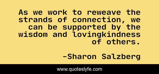 This page presents the quote "As we work to reweave the strands of connection, we can be supported by the wisdom and lovingkindness of others.". Author of this quote is Sharon Salzberg. This quote is about connection, work, others,.