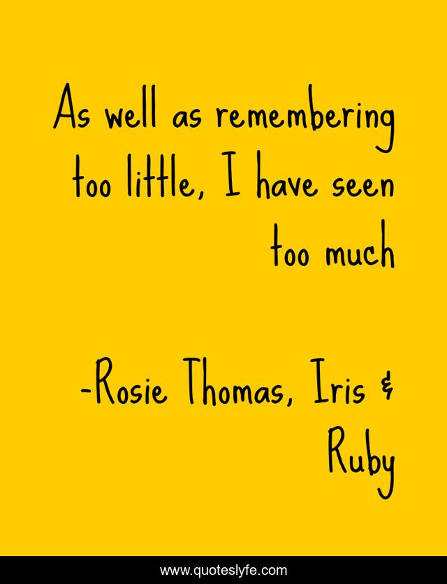 "Rosie Thomas, Iris & Ruby Quotes." Quoteslyfe.com, 2025. Fri. 05 Dec. 2025. <https://www.quoteslyfe.com/quote/As-well-as-remembering-too-little-I-132836>.