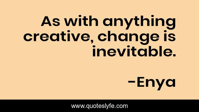 This page presents the quote "As with anything creative, change is inevitable.". Author of this quote is Enya. This quote is about anything, creative,.