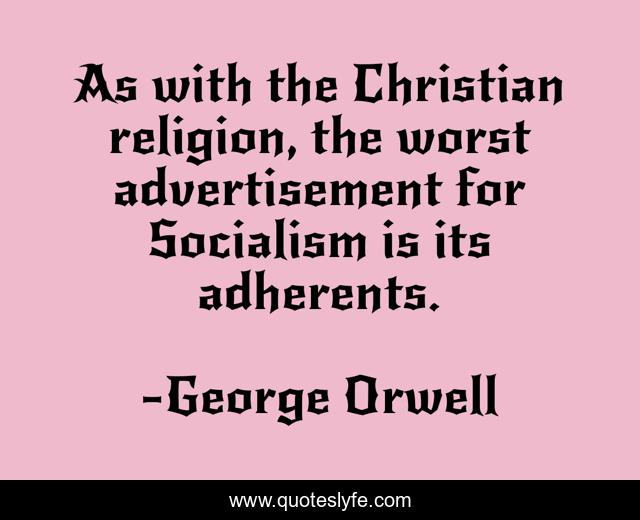 This page presents the quote "As with the Christian religion, the worst advertisement for Socialism is its adherents.". Author of this quote is George Orwell. This quote is about christian, socialism, worst,.