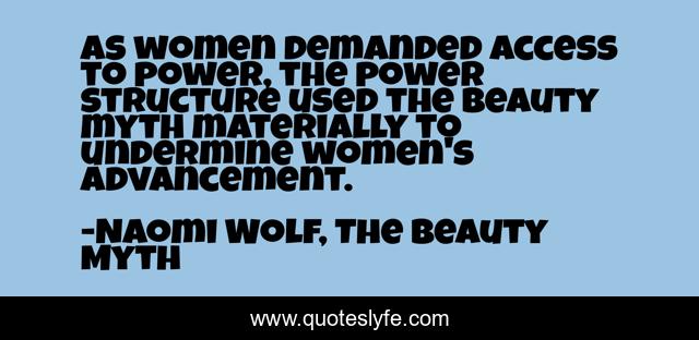 "Naomi Wolf, The Beauty Myth Quotes." Quoteslyfe.com, 2025. Tue. 09 Dec. 2025. <https://www.quoteslyfe.com/quote/As-women-demanded-access-to-power-the-60761>.
